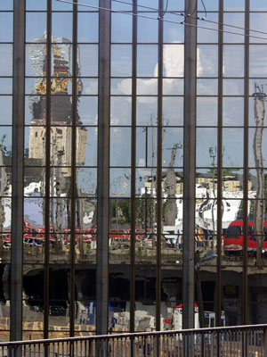 Gesichtslose Glasfassaden erhalten Form und Farbe durch Spiegelungen des Umraums. So entstehen neue, skuriele Bilder